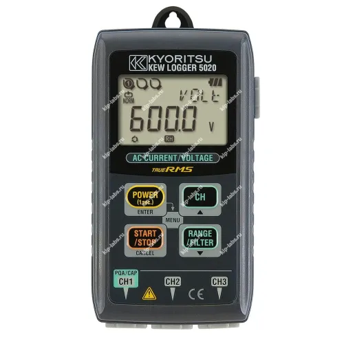 Регистратор параметров сети KEW 5020 от KYORITSU представляет собой прибор с 3-канальным входом для одновременной записи тока утечки, тока нагрузки и напряжения при подключении внешних клещевых адаптеров, при этом устройство ориентировано на синхронный сбор всех трёх параметров.