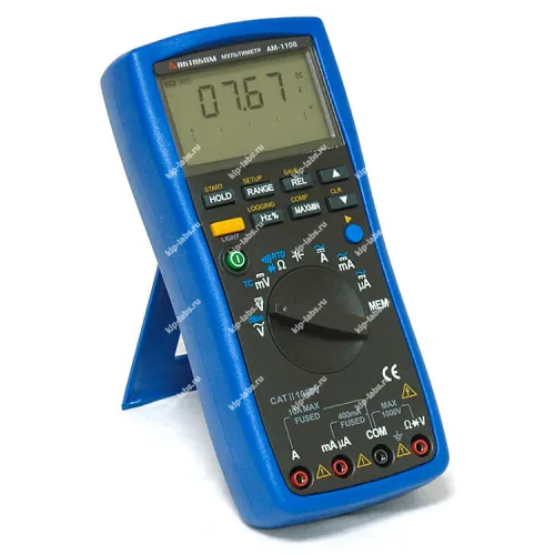 AM-1108 это ручной мультиметр с батарейным питанием, предназначеный для измерения широкого спектра электрических параметров, а так же имеющий функцию регистратора и возможность подключения к ПК.