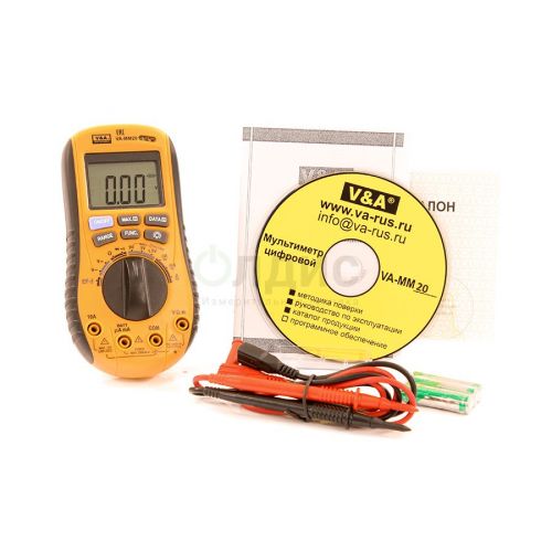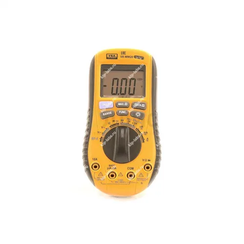Мультиметр VA-MM20В предназначен для измерений постоянного и переменного напряжения и тока, электрического сопротивления, ёмкости и частоты; в перечень функций также входит определение коэффициента заполнения (скважности), измерение температуры, проверка p-n переходов (диодов) и прозвонка цепи. За счёт этого прибор пригоден для задач как в полевых, так и в лабораторных условиях, при этом он выпускается под маркой V A Instrument.