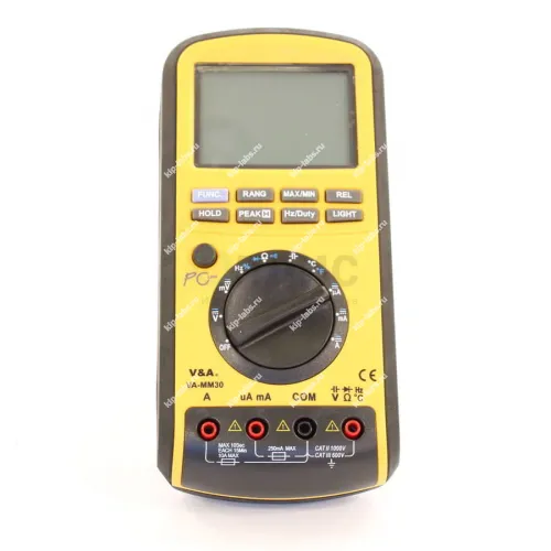 Цифровой мультиметр VA-MM30 предназначен для измерения постоянного и переменного напряжения и тока, электрического сопротивления, емкости, частоты логического и аналитического сигналов, коэффициента заполнения (скважности), температуры, проверки p-n переходов (диодов) и целостности цепи (прозвонки).