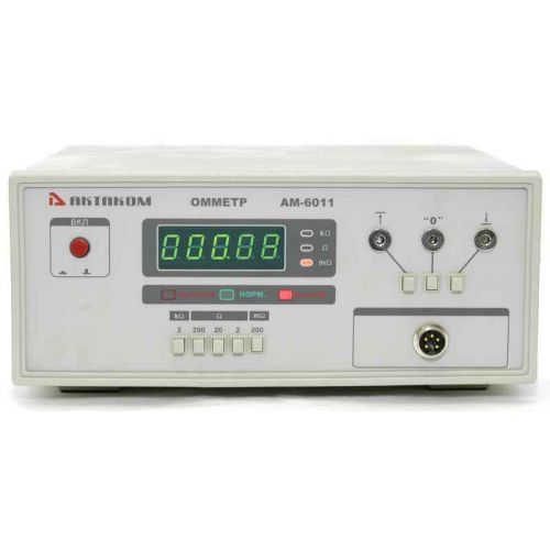 Омметр АМ-6011 предназначен для измерения сопротивления изоляции и низкоомных электрических цепей при различных рабочих напряжениях при проведении наладочных и ремонтных работ, а также при лабораторных исследованиях в условиях умеренного климата.