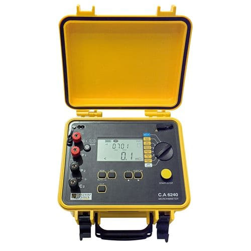 Микроометр C.A. 6240 позволяет быстро обнаруживать любое ухудшение сопротивления между 2 точками контакта. Измерение проводится быстро — пользователь получает результат на дисплее прибора менее чем через 3 секунды.
