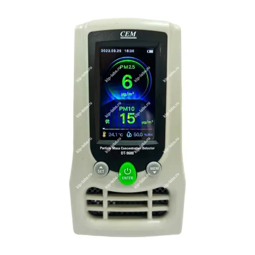 Прибор измеряет массовую долю взвешенных частиц, включая РМ2.5 и РМ10, и регистрирует уровни формальдегида (НСНО) и суммарных летучих органических соединений (TVOC); для оценки частиц используется метод лазерного рассеяния. Производитель CEM Industries и отнесение к классу газоанализаторы задают специфику применяемых измерительных подходов. При эксплуатации уместна дискретность показаний, при калибровке рекомендуется плановая проверка сенсоров.
