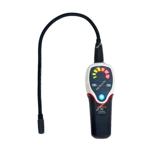 Течеискатель имеет небольшие размеры и эргономичную форму, благодаря чему им очень удобно пользоваться. Длинный гибкий зонд позволяет произвести обнаружение течи даже в местах, доступ к которым затруднен, например, в корпусах кондиционеров, под потолками и за строительными конструкциями. О наличии утечки Center 380 оповестит при помощи световой и звуковой сигнализации. Устройство имеет высокую устойчивость и может работать с фреонами, имеющими высокую загрязненность при минимальном количестве ошибочных срабатываний. Купить течеискатель фреона Center 380 в Санкт-Петербурге.