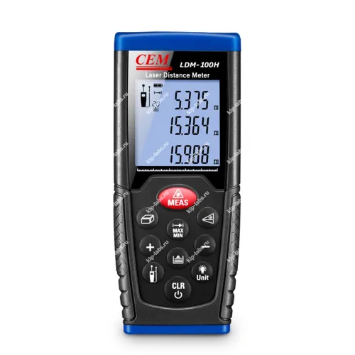 LDM-100H - лазерный дальномер, предназначенный для оперативного бесконтактного измерения расстояний, высот и углов, а также для расчёта площади и объёма помещений; при этом прибор выполняет как прямые, так и косвенные замеры, что удобно при ограниченном доступе к контрольной точке. Изготовитель - CEM Industries, а модель относится к классу контрольно-измерительных приборов.