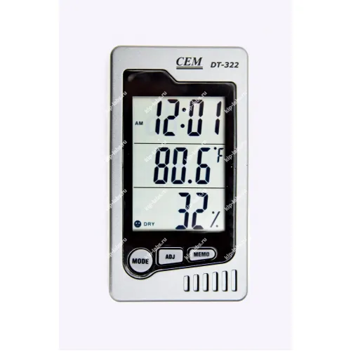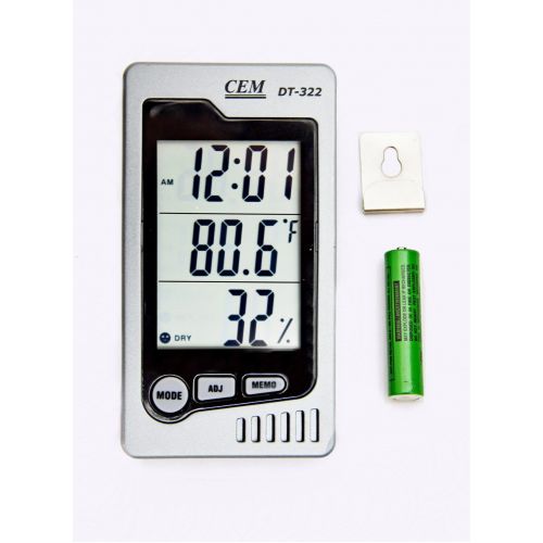 DT-322 — портативный измеритель температуры и относительной влажности воздуха; произведён CEM Industries, при этом рассчитан на отображение ключевых климатических параметров.