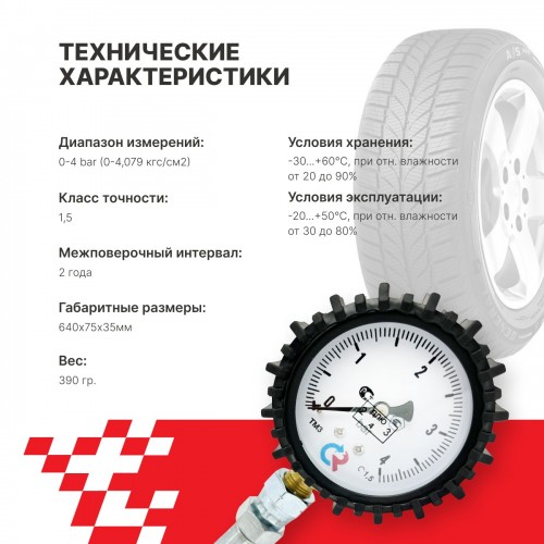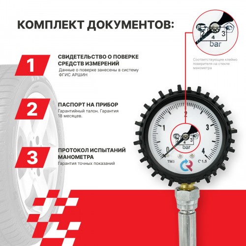 - Манометр шинный с поверкой - 1 шт.