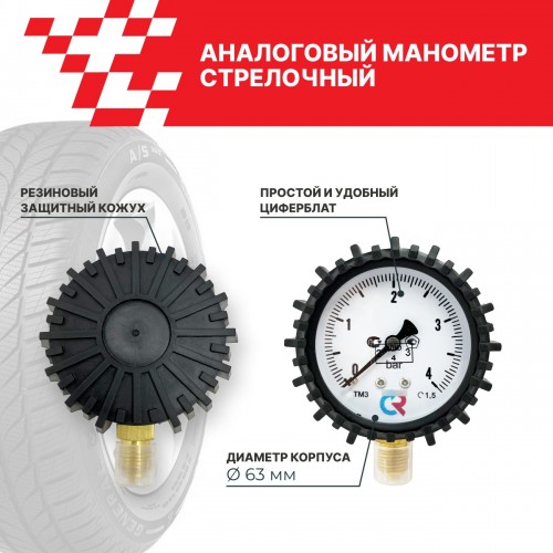 Описание модели: Манометр шинный на 4 бар (4 атмосферы) с поверкой