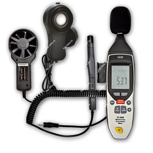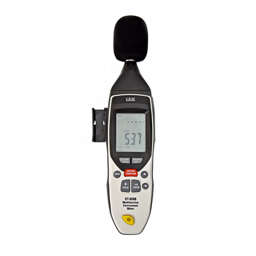 DT-859B — многофункциональный прибор для контроля параметров окружающей среды, совмещающий в одном устройстве шумомер, люксметр, гигрометр, термометр и термоанемометр с режимами CFM / CMM; за счёт этого он позволяет проводить комплексную оценку микроклимата в разных условиях, при этом производителем аппарата является CEM Industries.