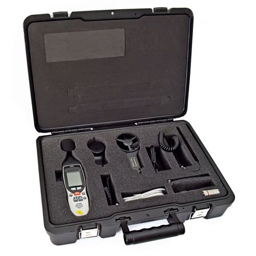 Для измерения освещённости в конструкции применён сверхстабильный кремниевый фотодетектор с коррекцией косинуса при угловом падении света. Для контроля влажности и температуры используются полупроводниковый датчик и термопара типа К; в роли шумомера прибор годится для проверки акустики в помещениях любого назначения, включая студии и офисы, а также для работ на производстве — см. Шумомеры.