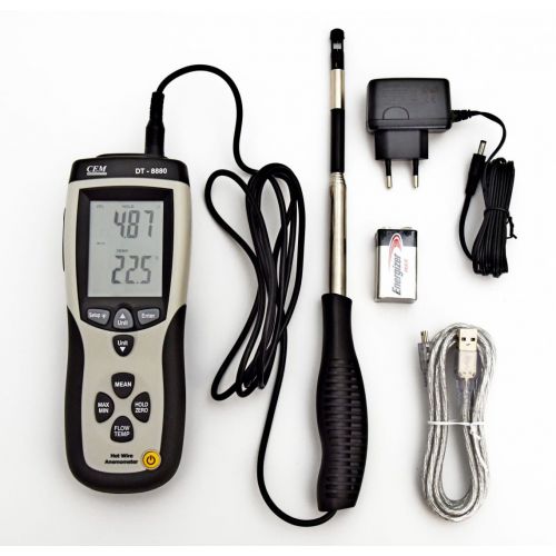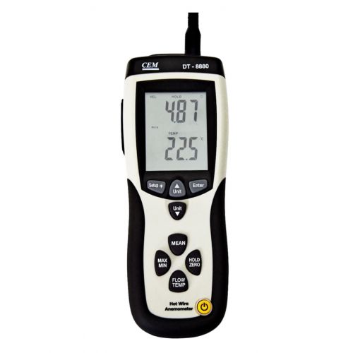 Анемометр DT-8880 от CEM Industries — компактный цифровой прибор, при этом он рассчитан на измерение малых скоростей воздушного потока.