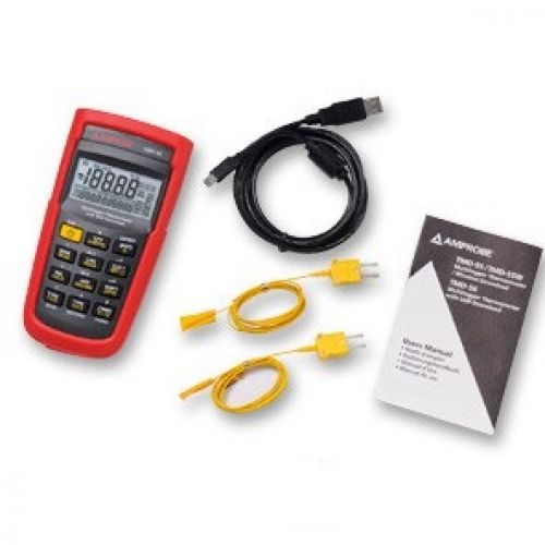 Прибор Amprobe модели TMD-56 предназначен для измерения температуры с одновременной записью показаний; при этом он способен сохранять до 16000 меток и подключаться к компьютеру через USB-интерфейс.