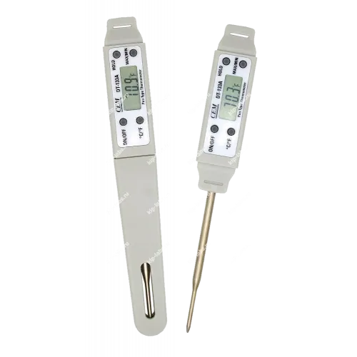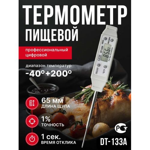 Профессиональный цифровой термометр DT-133A применяется в пищевой отрасли, при проверке вентиляционных и отопительных систем, а также в лабораторных исследованиях; при этом для увеличения реального срока службы батареи прибор автоматически выключается примерно через 45 минут.