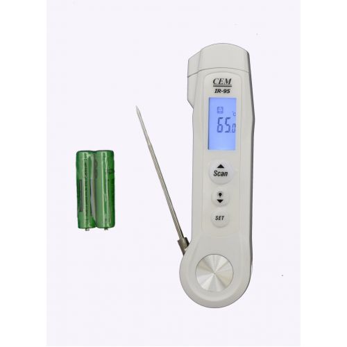 Устройство выполняет измерения двумя способами: бесконтактно с помощью инфракрасного сенсора и контактно при использовании откидывающегося зонда; инфракрасный режим охватывает диапазон -40 до 280°C, при этом контактный зонд обеспечивает замеры в пределах -40 до 200°C. Модель производится CEM Industries, и её применяют при проверках тепловых и энергетических систем, а также в контроле качества пищевой продукции; кроме того, прибор органично вписывается в рабочие процессы, связанные с оборудованием из раздела термометры.