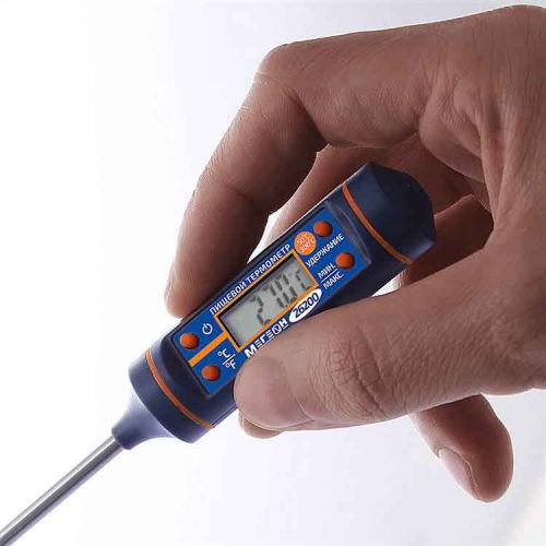 Устройство отображает текущее значение температуры в реальном времени, что позволяет оперативно фиксировать отклонения теплового режима. При эксплуатации уместна дискретность показаний. Предусмотрено ручное переключение единиц измерения; аппарат автоматически отключается через 10 минут бездействия и предупреждает о низком заряде батареи. Зонд изготовлен из нержавеющей стали, длина измерительной части 125 мм, диаметр 4 мм. Доступны функции удержания показаний и отображения минимальных и максимальных значений. Прибор выполняет самодиагностику и при выявлении неполадок выводит соответствующее уведомление на дисплей.