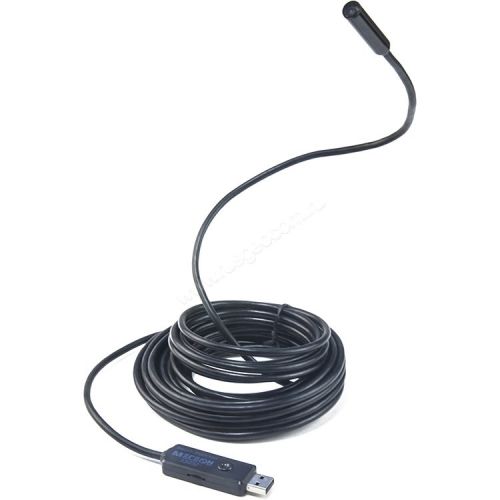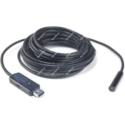 - Полужёсткий зонд с гибкой конструкцией и малым сечением, длина 5 метров и диаметр 10 мм, что упрощает проход в узкие каналы.