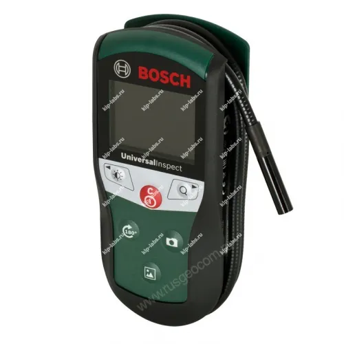 Видеоскоп BOSCH UniversalInspect имеет влагозащищённую камеру, установленную на 95-сантиметровом гибком кабеле; это облегчает осмотр труднодоступных областей, при этом прибор располагает цифровым увеличением и подсветкой рабочей зоны.
