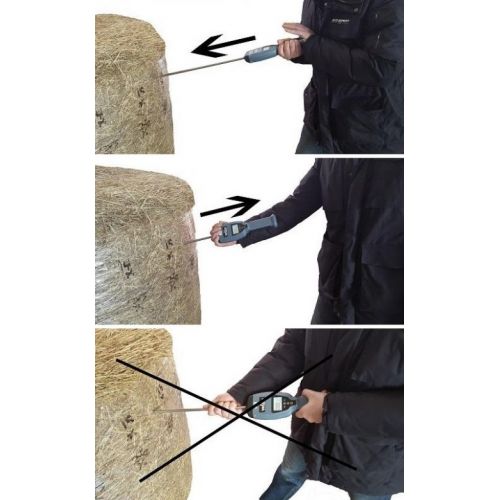 При измерении оператор вводит в тюк стержневой наконечник - это обеспечивает фиксацию влажности и температуры в точке контакта, при этом нержавеющий материал щупа повышает скорость получения показаний и служит гарантом долговечности.