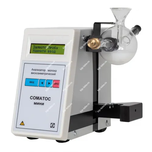 Анализатор молока вискозиметрического типа "Соматос-Мини" предназначен для контроля качества молока и определения числа соматических клеток; он использует метод вискозиметрии, при котором оценивают условную вязкость при вытекании через капилляр, при этом применяемая методика соответствует ГОСТ 23453-2014 Российской Федерации. Производитель - Сибагроприбор, а изделие относится к группе Анализатор молока.