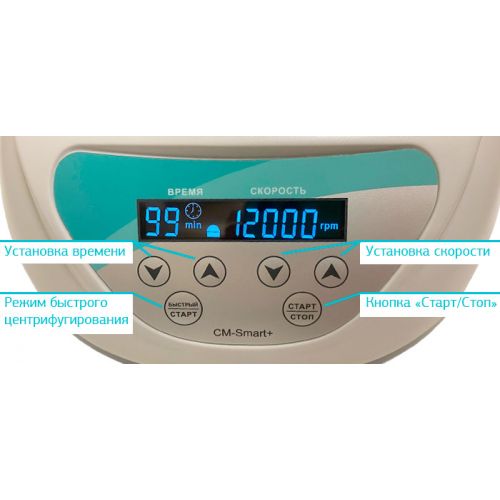 - Три режима работы: с заданными скоростью и временем; быстрый режим с заданной скоростью: центрифуга будет работать, пока нажата кнопка; непрерывный режим, при котором центрифуга будет работать, пока вручную не нажать кнопку «стоп».
