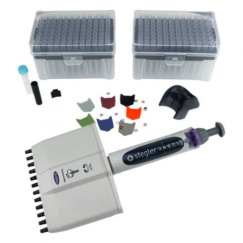 Двенадцатиканальный дозатор переменного объёма Stegler MVA-12-20-200 (12 каналов, 20-200 мкл, полностью автоклавируемый)