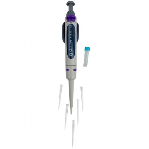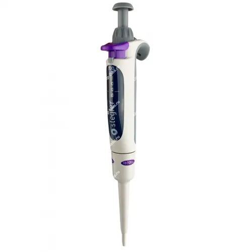 Модель выпускает STEGLER. Это одноканальный механический пипеточный дозатор с регулируемым объёмом дозирования от 10 до 100 мкл.