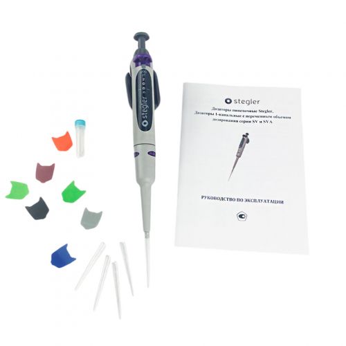 Кратко о модели: Одноканальный дозатор переменного объёма Stegler SV-1-20-200 (20-200 мкл, частично автоклавируемый)