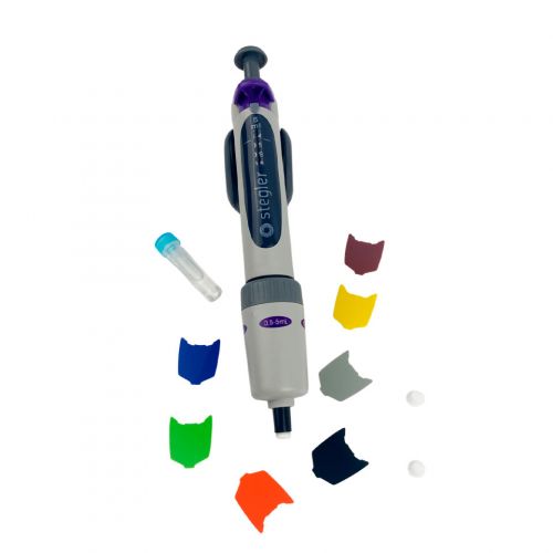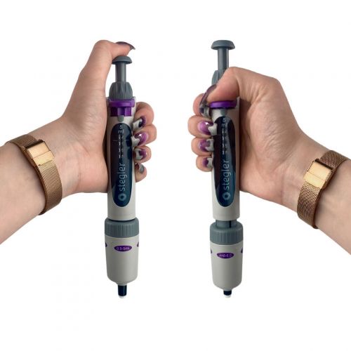 Stegler SV-1-500-5000 представляет собой одноканальный механический пипеточный дозатор с регулируемым объёмом, при этом его рабочий принцип основан на воздушной подушке: отмеряемая жидкость набирается в одноразовый наконечник, установленный на приборе, не контактируя с валом или плунжером. Модель выпускает STEGLER.