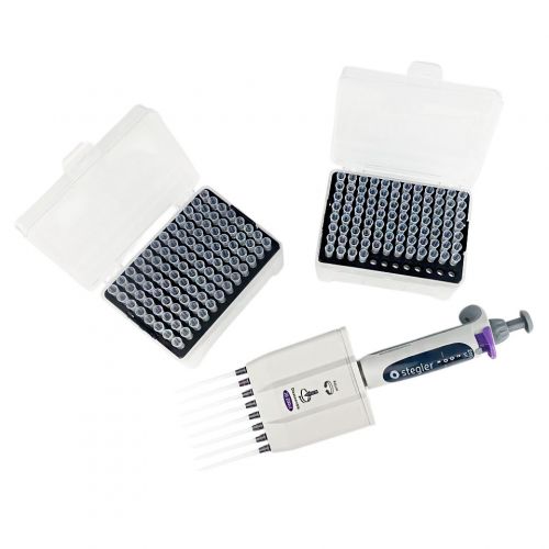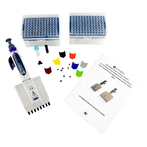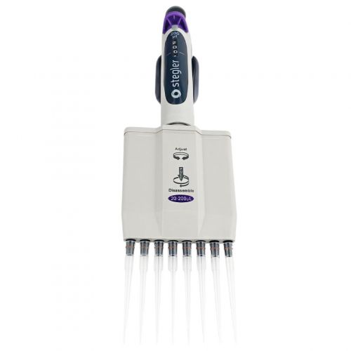 Восьмиканальный дозатор переменного объёма Stegler MVA-8-20-200 (8 каналов, 20-200 мкл, полностью автоклавируемый)
