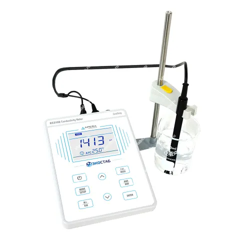 Настольный кондуктометр ЭКОСТАБ EC2102 обеспечивает быстрые и стабильные измерения электропроводности/TDS для рутинных лабораторных работ и образовательных целей, обладая отличным соотношением цена/качество.
