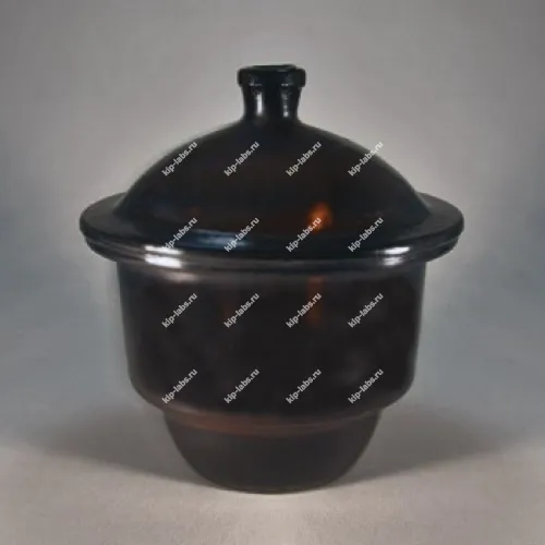 Эксикатор без крана предназначен для медленного высушивания и хранения гигроскопических веществ. В комплект входит керамическая вставка. Изготовлен из янтарного (темного) стекла.