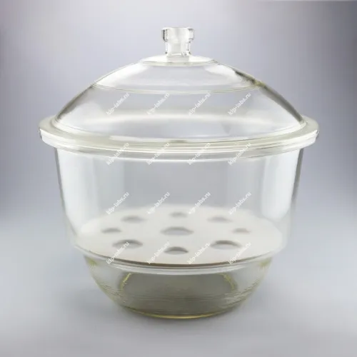 Эксикатор без крана предназначен для медленного высушивания и хранения гигроскопических веществ. В комплект входит керамическая вставка. Изготовлен из нейтрального стекла.