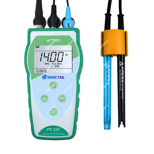 Портативный прибор ЭКОСТАБ PC233 предназначен для рутинных измерений pH и проводимости в полевых условиях. Модель оснащена различными интеллектуальными функциями и имеет прочную конструкцию.