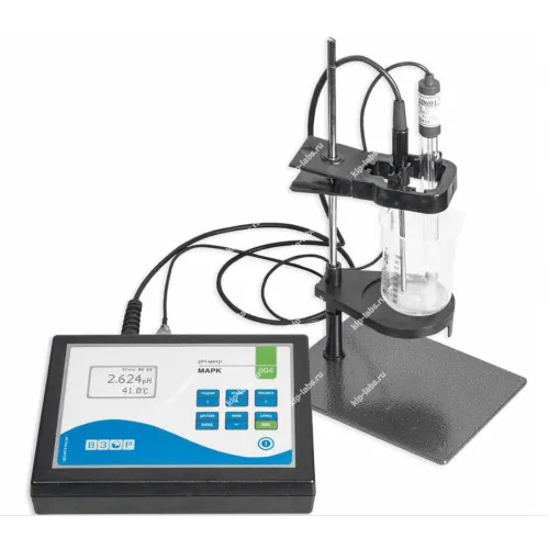 рН-метр МАРК-904 представляет собой лабораторный микропроцессорный прибор. В комплект входит блок преобразовательный с датчиком температуры и кабелем USB, блок питания и электродная система, состоящая из раздельных электродов (ЭС-10601/7 и Эср-10101/3,0).