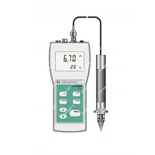 pH-150МИ с ножевым электродом служит для определения pH и окислительно-восстановительного потенциала (Eh), а также для измерения температуры в водных растворах; дополнительно прибор предназначен для прямых замеров pH в мясе и мясопродуктах. Производителем аппарата является НПО Измерительная техника, что подтверждает профильное назначение устройства и его применение в лабораторной практике.