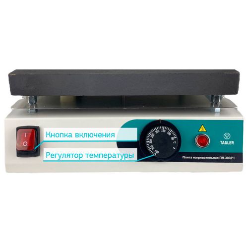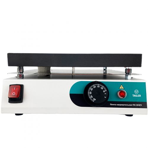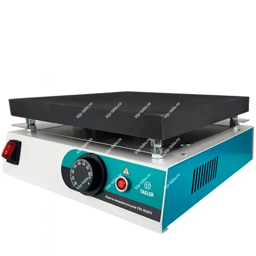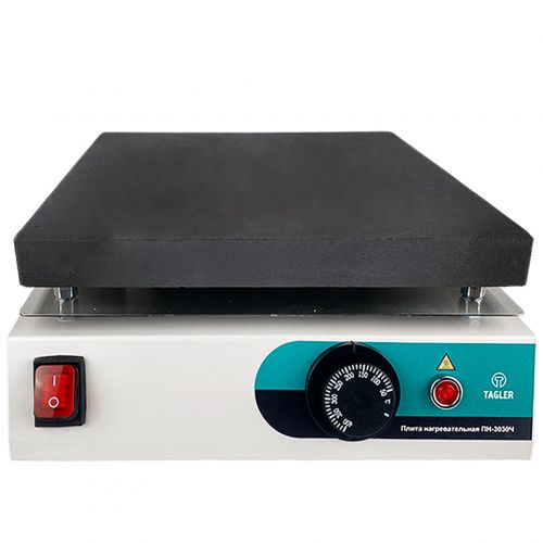 Модель оснащена чугунной рабочей поверхностью размером 300×300 мм, обеспечивающей равномерное распределение тепла и стабильный температурный режим. Регулировка нагрева осуществляется плавно при помощи поворотного тумблера в диапазоне от 50 до 400 °С, что позволяет легко адаптировать прибор под конкретные задачи. Прочная металлическая конструкция с порошковым покрытием защищает устройство от механических воздействий и коррозии.
