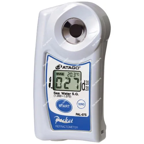 Измеритель удельного веса морской воды PAL-07S представляет собой цифровой рефрактометр, в котором показатель преломления автоматически пересчитывается в значение удельного веса (Specific Gravity) морской воды.