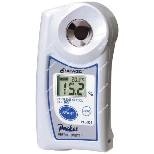 Карманный рефрактометр PAL-92S легко измеряет растворы этиленгликоля и отображает результаты в цифровом виде на дисплее. Данный прибор также позволяет измерять точку замерзания в градусах Фаренгейта. Температура замерзания будет меняться в зависимости от концентрации этиленгликоля в растворе.