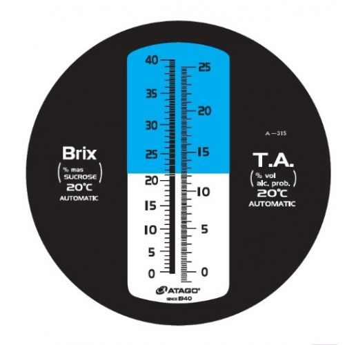 Имеет две шкалы: T.A. (Titre Alcoometrique) и Brix %. Благодаря шкале Brix Master-TA позволяет определять сахаристость и спелость винограда, а шкала T.A. показывает предполагаемое содержание алкоголя (vol%) при начальных этапах производства: сбор урожая, отжим, процесс брожения.