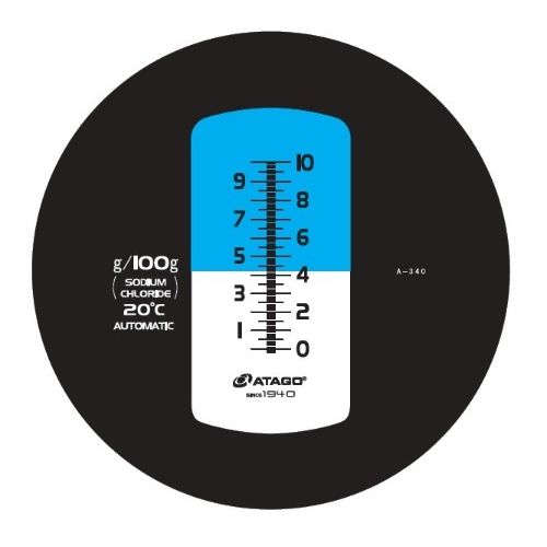 Master-S10M - ручной оптический рефрактометр для определения солености. Прибор показывает концентрацию NaCl в водных растворах и его можно использовать для контроля концентрации соленой воды, тузлука.