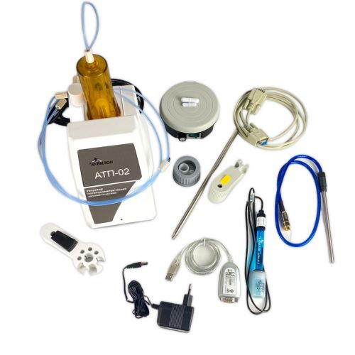Аквилон АТП-02 — автоматический высокоточный потенциометрический титратор. Прибор отвечает всем требованиям, предъявляемым к данному классу оборудования: непрерывная и дискретная подача титранта (диапазон от 0,1 до 36 мл/мин — при объёме дозирующего устройства 20мл; и от 0,25 до 90 мл/мин — при объёме дозирующего устройства 50мл), автоматическое изменение скорости подачи по мере приближения к точке эквивалентности или заданной точке и т.д.