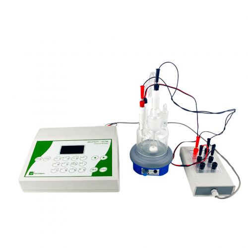 Работа титратора основана на реакции Карла Фишера, заключающейся в количественном взаимодействии йода и диоксида серы с водой в метанольно-пиридиновом растворе. После исчерпания воды реакция прекращается, а изменение концентрации йода фиксируется индикаторной системой. Титратор обеспечивает титрование до заданной точки или по всей кривой титрования, а также автоматически обнуляет результаты после измерений. Подключение к ПК и встроенное ПО упрощают обработку и анализ данных.