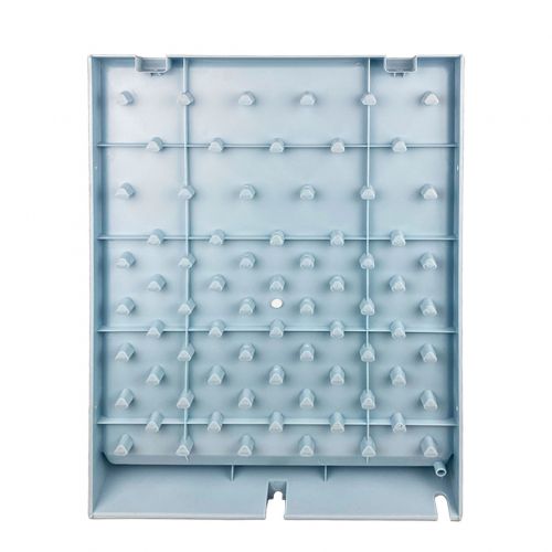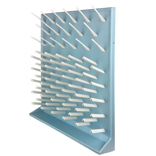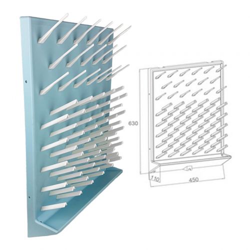 Модель включает 72 посадочных места и рассчитана на сушку широкого спектра лабораторной посуды. Конструкция сочетает устойчивость, удобство размещения и возможность адаптации под различные условия эксплуатации — от настольного варианта до крепления на стене.
