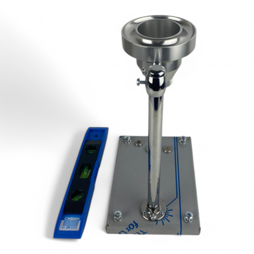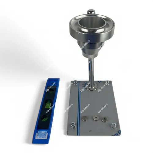 Конструкция прибора включает металлический резервуар в форме воронки и три сменных сопла. Резервуар изготовлен из алюминиевого сплава марки АЛ9 по ГОСТ 1583-89, а сопла выполнены из нержавеющего сплава 12Х18Н10Т, обеспечивающего устойчивость к коррозии и стабильные характеристики при эксплуатации. Герметичное соединение сопла с резервуаром предотвращает утечки и обеспечивает точность измерений.