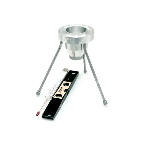 Принцип работы вискозиметра основан на измерении времени истечения фиксированного объёма исследуемой жидкости через отверстие сопла. Полученные данные позволяют рассчитать кинематическую вязкость по графикам, таблицам или эмпирическим формулам. Конструкция на треноге обеспечивает устойчивое положение прибора во время проведения испытаний и удобство работы в лабораторных условиях.
