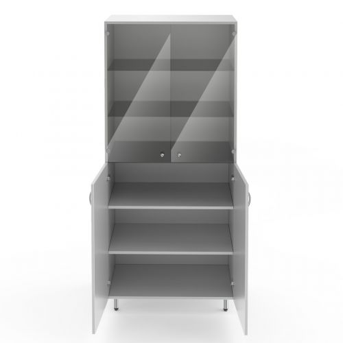 - Дверцы: сверху стеклянные, снизу ЛДСП.