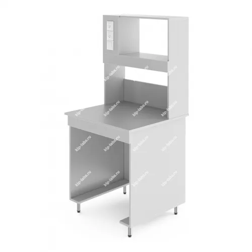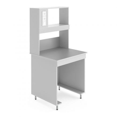 НВ-800 ПСП — это небольшой пристенный стол с надстройкой. Столешница глубиной 70 см. В надстройку встроена лампа и две розетки. Предназначен для работы стоя: высота от пола до столешница равна 85 см.