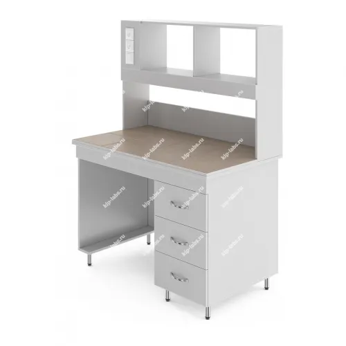 НВ-1200 ПК — это пристенный стол с надстройкой. Столешница глубиной 70 см. В надстройку встроена лампа и две розетки. Предназначен для работы стоя: высота от пола до столешница равна 85 см.