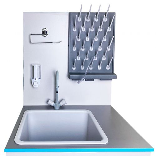 Модель выпускается в двух цветовых исполнениях: Stegler KS-310W — белый и Stegler KS-310G — серый. Кран оснащён вентилями с ходом в 1/4 оборота, что упрощает регулировку потока воды. Соединительный штуцер длиной 50 мм имеет съёмную конструкцию, обеспечивающую возможность очистки сопла. Подобные решения широко применяются при оснащении лабораторных помещений, где используется мебель лабораторная и инженерные системы от бренда STEGLER.