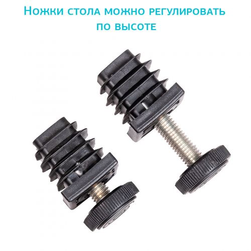 Ножки изделия имеют регулировку высоты в пределах двух сантиметров, что позволяет установить стол даже на достаточно неровном полу.